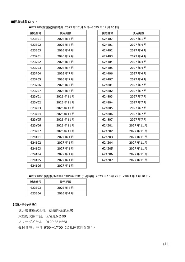 出典:沢井製薬ホームページ(https://med.sawai.co.jp/file/prodrecall/open/kaisyu_2.pdf