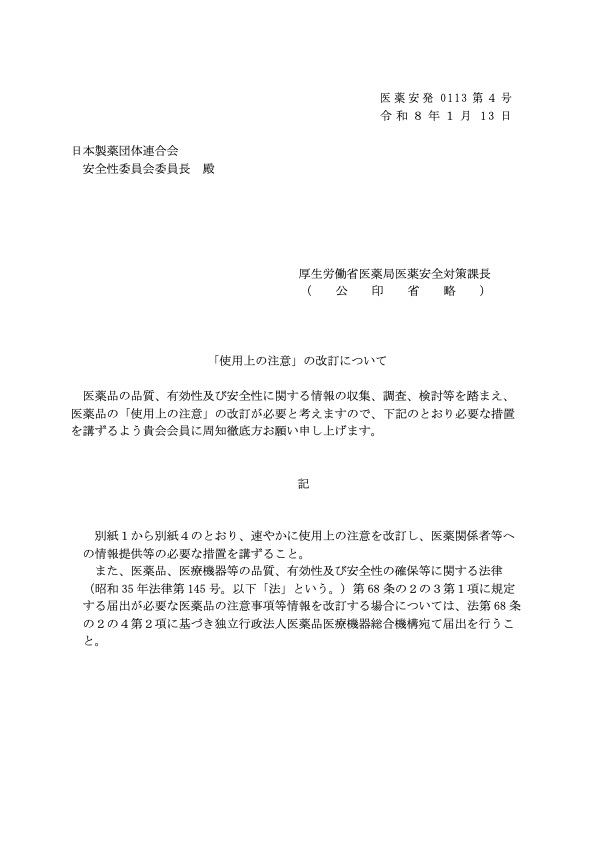 厚生労働省は1月13日、アスピリン含有製剤について「重大な副作用」に「アレルギー反応に伴う急性冠症候群」を追記する「使用上の注意」改訂についての通知を発出した。