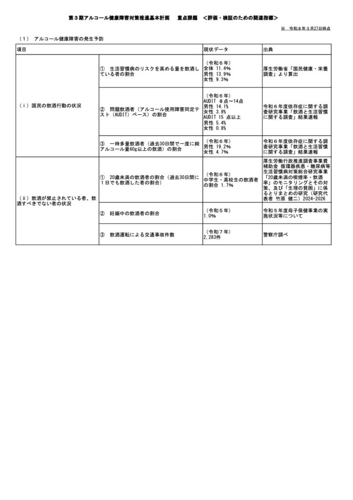 アルコール健康障害対策推進基本計画 厚生労働省(2026年3月27日)