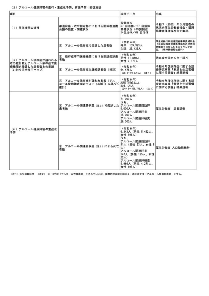 (2)アルコール健康障害の進行・重症化予防、再発予防・回復支援