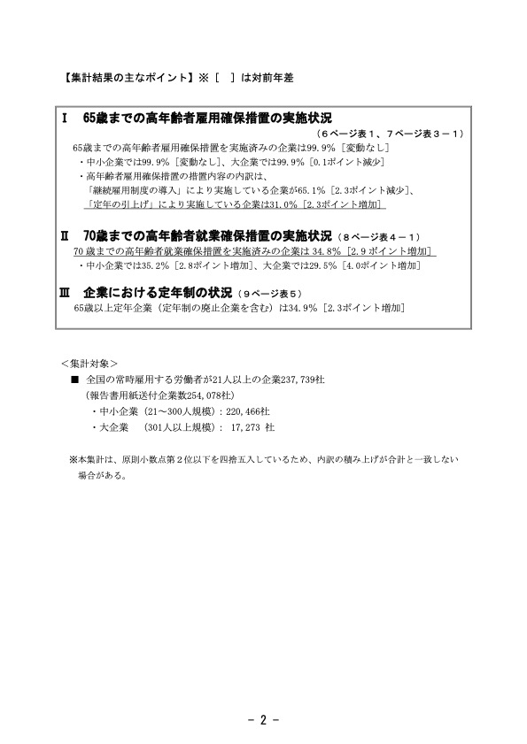 70歳までの高年齢者就業確保措置を実施済みの企業は34.8%[2.9ポイント増加]