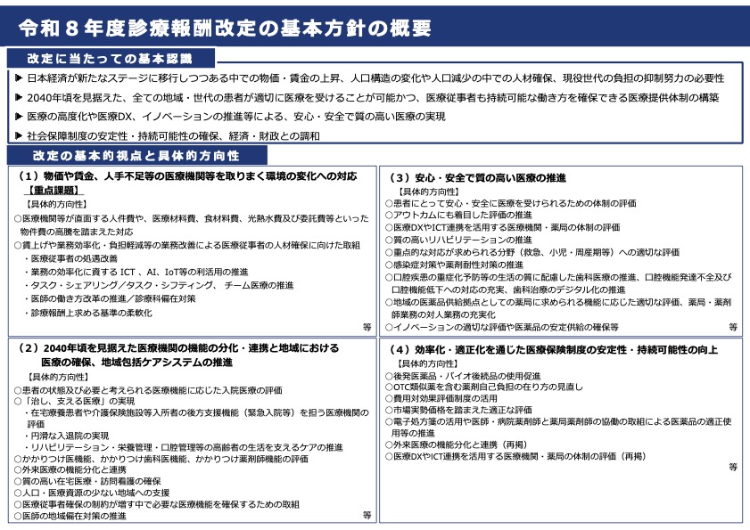 厚生労働省は12月9日、2026年度診療報酬改定の基本方針を取りまとめ公表した。