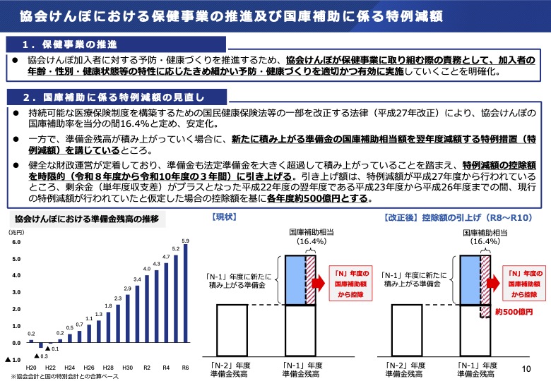 - 協会けんぽにおける保健事業の推進及び国庫補助に係る特例減額