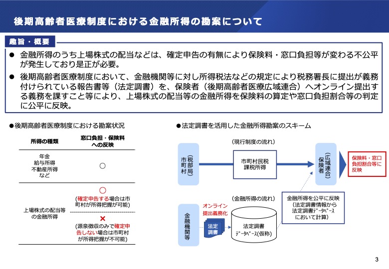 - 後期高齢者医療制度における金融所得の勘案について
