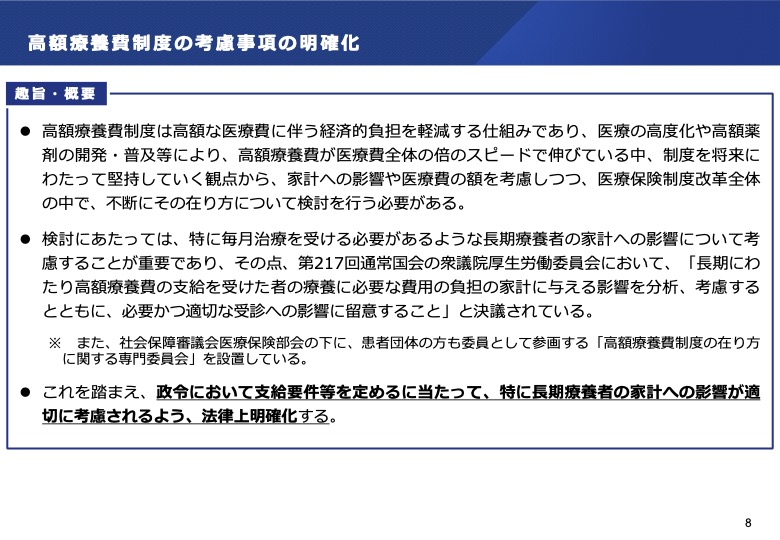 - 高額療養費制度の考慮事項の明確化