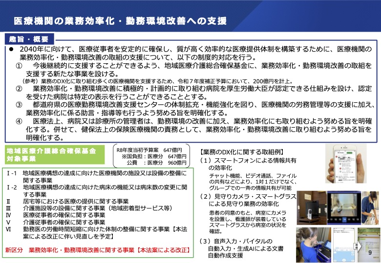 - 医療機関の業務効率化・勤務環境改善への支援