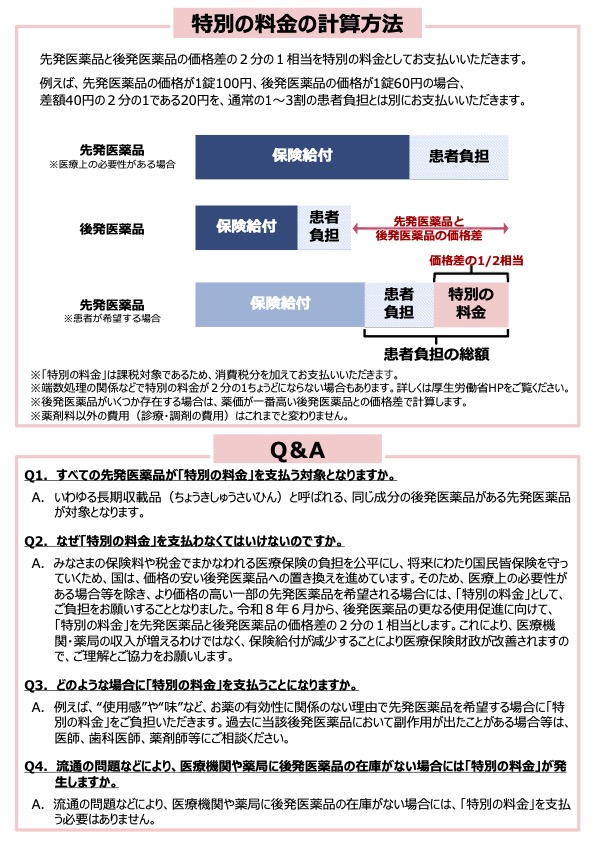 令和8年6月から、先発医薬品と後発医薬品の価格差の2分の1相当の料金のことを言います。