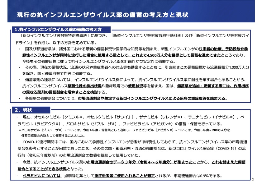 抗インフルエンザウイルス薬の備蓄方針【厚労省】