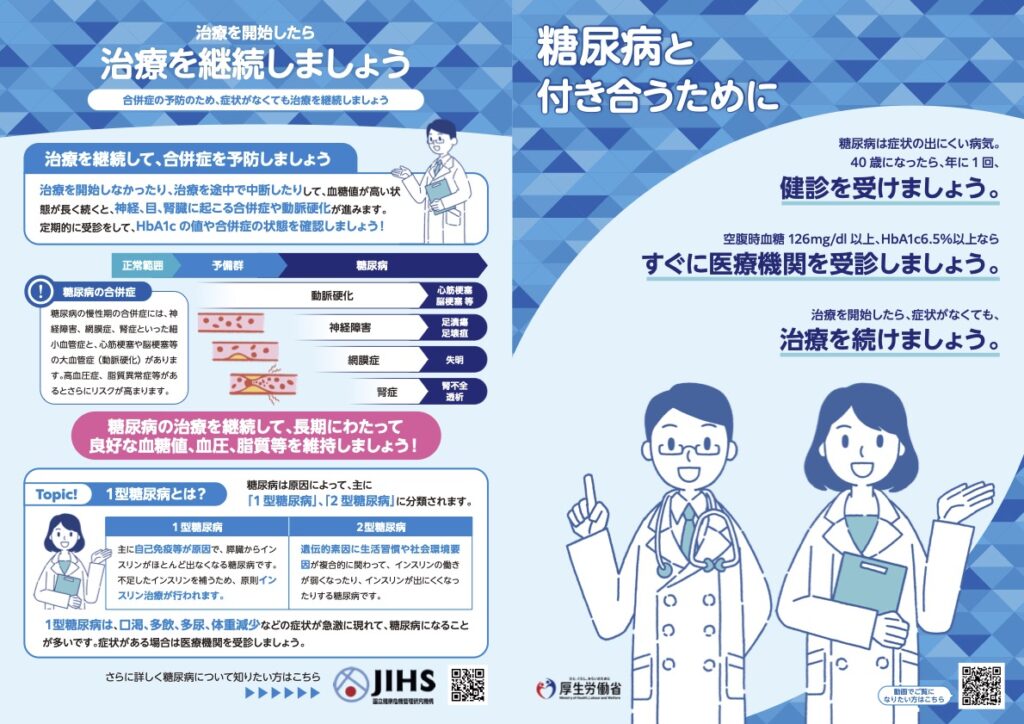厚生労働省は3月31日、糖尿病に関する普及啓発資材「糖尿病と付き合うために・糖尿病は誰でもなりうる病気」を公表した。