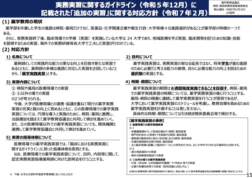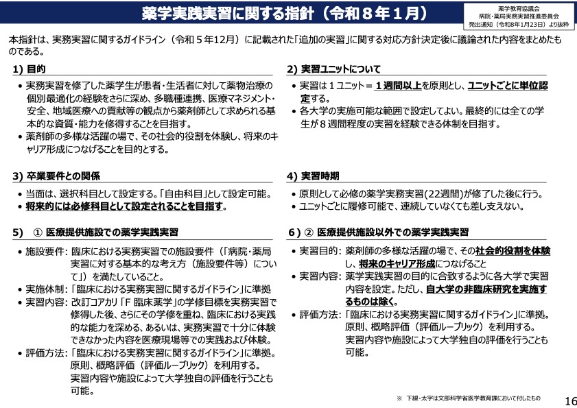 - 高度な臨床能力を持つ薬剤師の養成に向けて