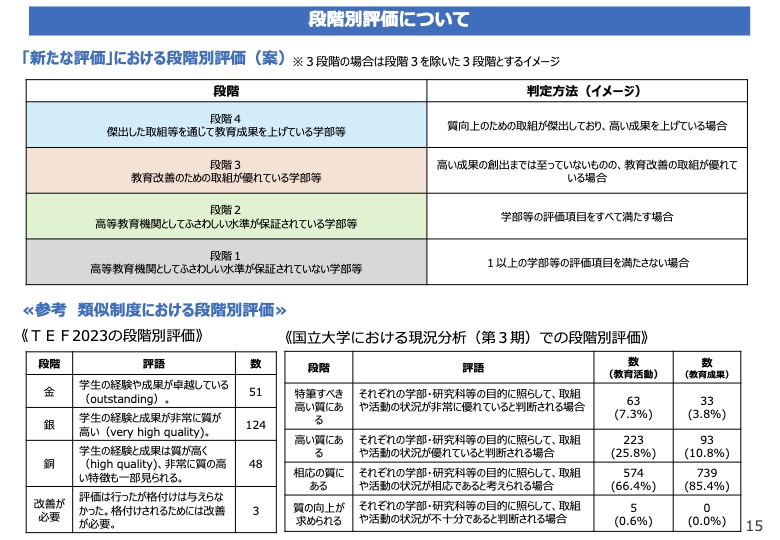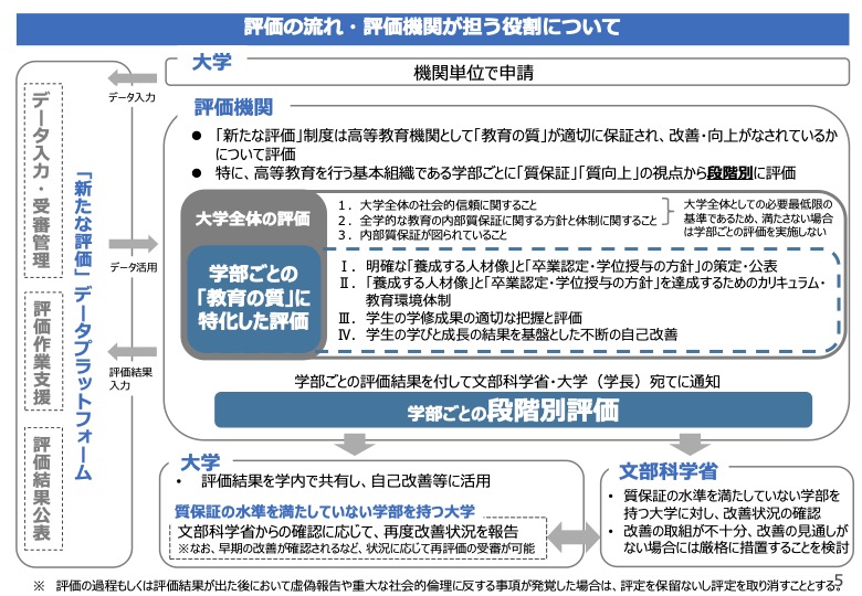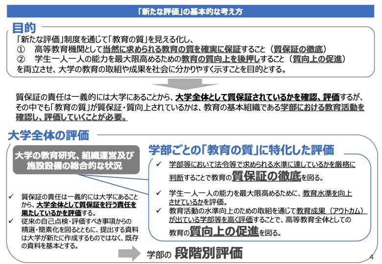学部ごとの評価…「教育の質」に特化し、質保証・質向上の双方の視点から評価
