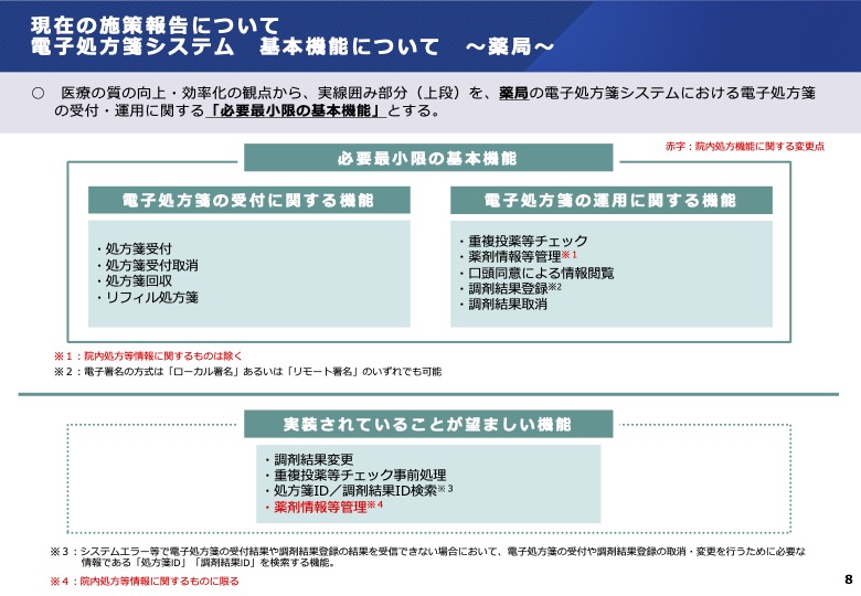 • 現在の施策報告について電子処方箋システム基本機能について~薬局~(P8)