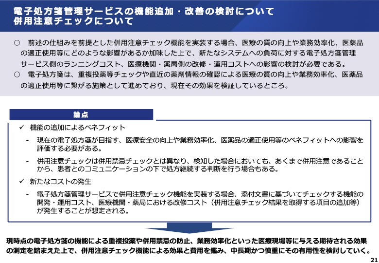 • 電子処方箋管理サービスの機能追加・改善の検討について併用注意チェックについて(P21)