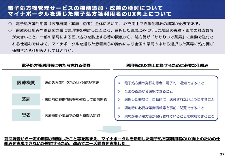マイナポータルを通じた電子処方箋利用者のUX向上について(P27)